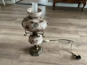Vintage olielamp met bloemen elektrisch gemaakt