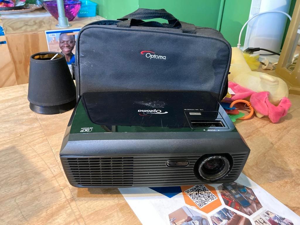 In goede staat en werkend. Beamer van het merk optoma. De artikelen die wij op marktplaats verkopen kunnen verstuurd worden of opg