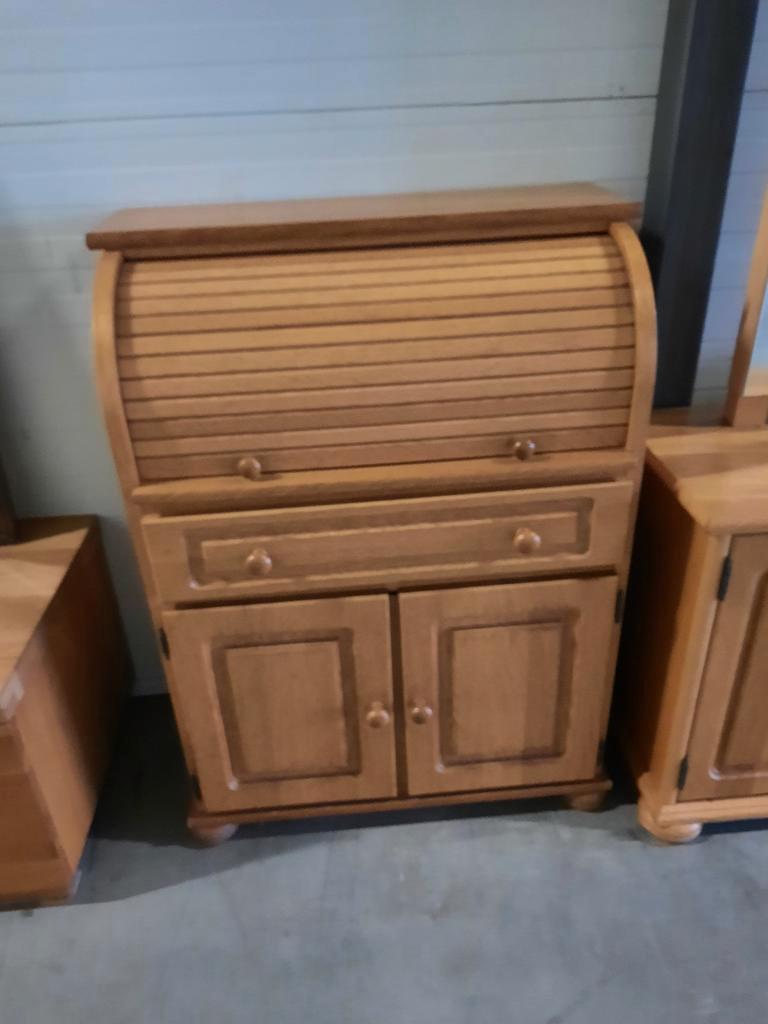 Eiken secretaire. Afmetingen : breedte 74 cm, diepte 43 cm hoogte 104 cm. Hoogte schrijfblad 73,5 cm in nette staat