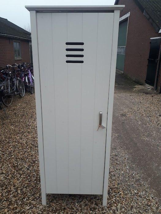 Leuke witte hang/legkast van massief hout is extra legplank bij zodat hij ook alleen legkast kan zijn. Hoog 190 cm breed 70 cm diep 60 cm wordt verkocht in de kringloopwinkel van woord en daad, gevest