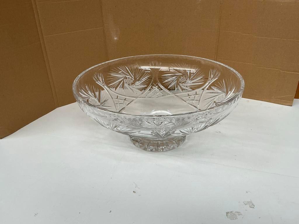 Prachtige kristallen schaal met een elegante voet. De schaal is helder en heeft een mooi patroon. Perfect voor het serveren van fr