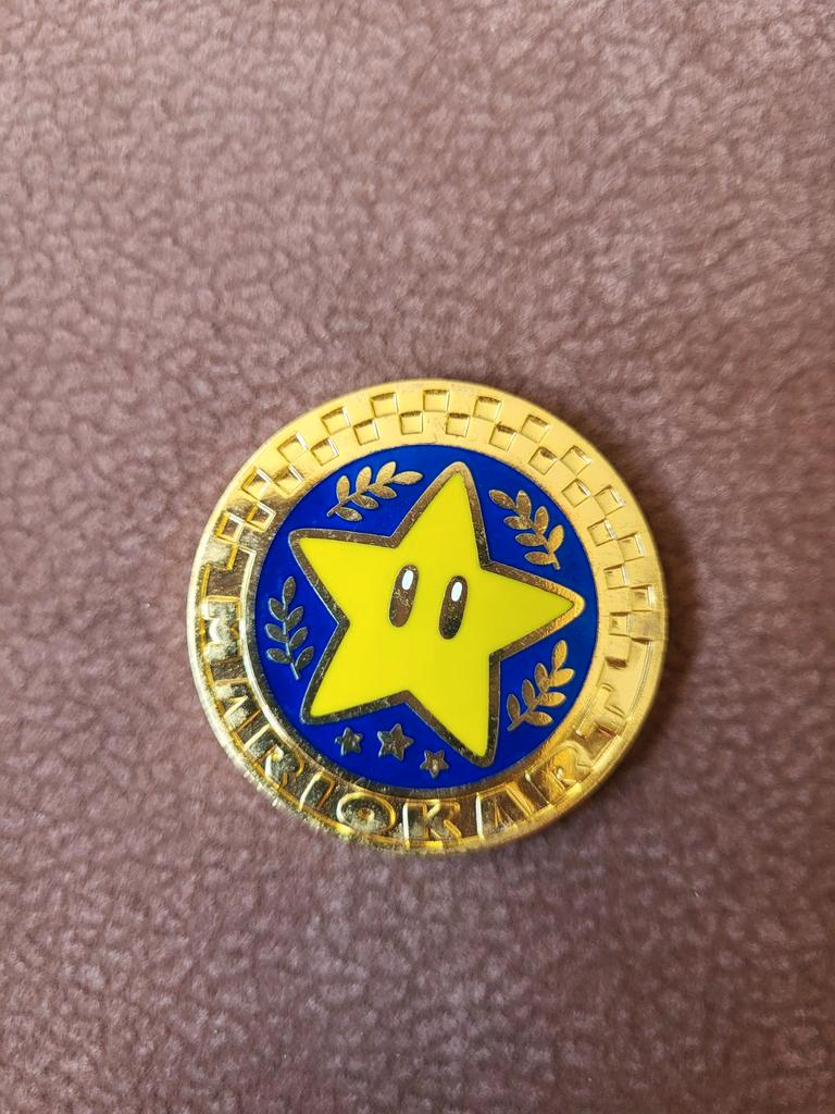 Verzamel dit zeldzame mario kart star cup speldje! Een must-have voor elke mario fan. Het speldje is in goede staat en toont de ic