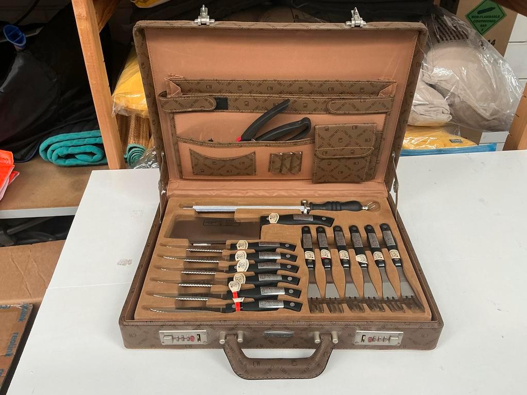 Complete messenset van carl weill s.g. Ambassador profi in een nette koffer. De set bevat diverse messen, vorken, een vleesbijl, e