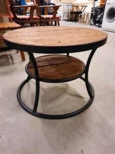 Robuuste ronde salontafel met zwart stalen frame
