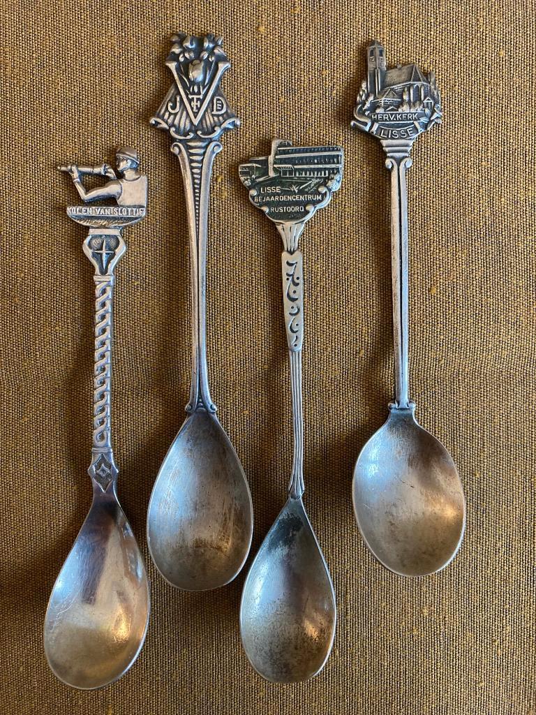 4 verzilverde lepeltjes van bedrijven / kerken uit lisse 1 x slottje kolenhandel = verkocht 1 x jac th de vroomen bloembollenbedrijf = verkocht 1 x bejaardencentrum rustoord 1 x hervormde kerk lisse,