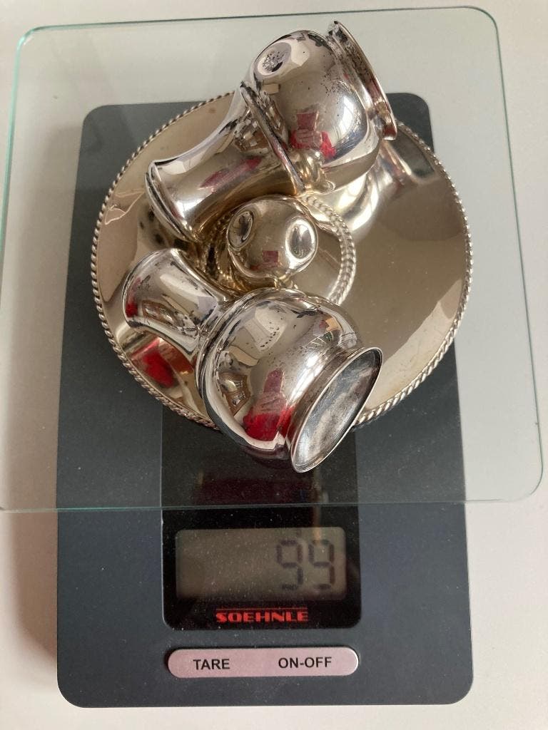 99 gram aan zilveren voorwerpen van gehalte 925. (Alle voorwerpen gemerkt met 925) wordt niet separaat verkocht, maar in 1 x. Bieden vanaf eur 160, gezien de huidige zilverprijs. Alleen bieden via mp,