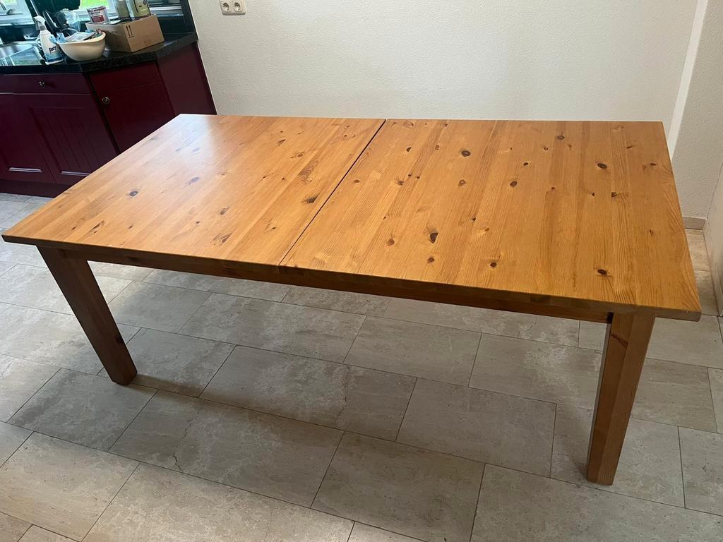 Grenen uitschuiftafel ikea stornas 110×200 cm en 290 cm met 2 bladen van 45 cm.