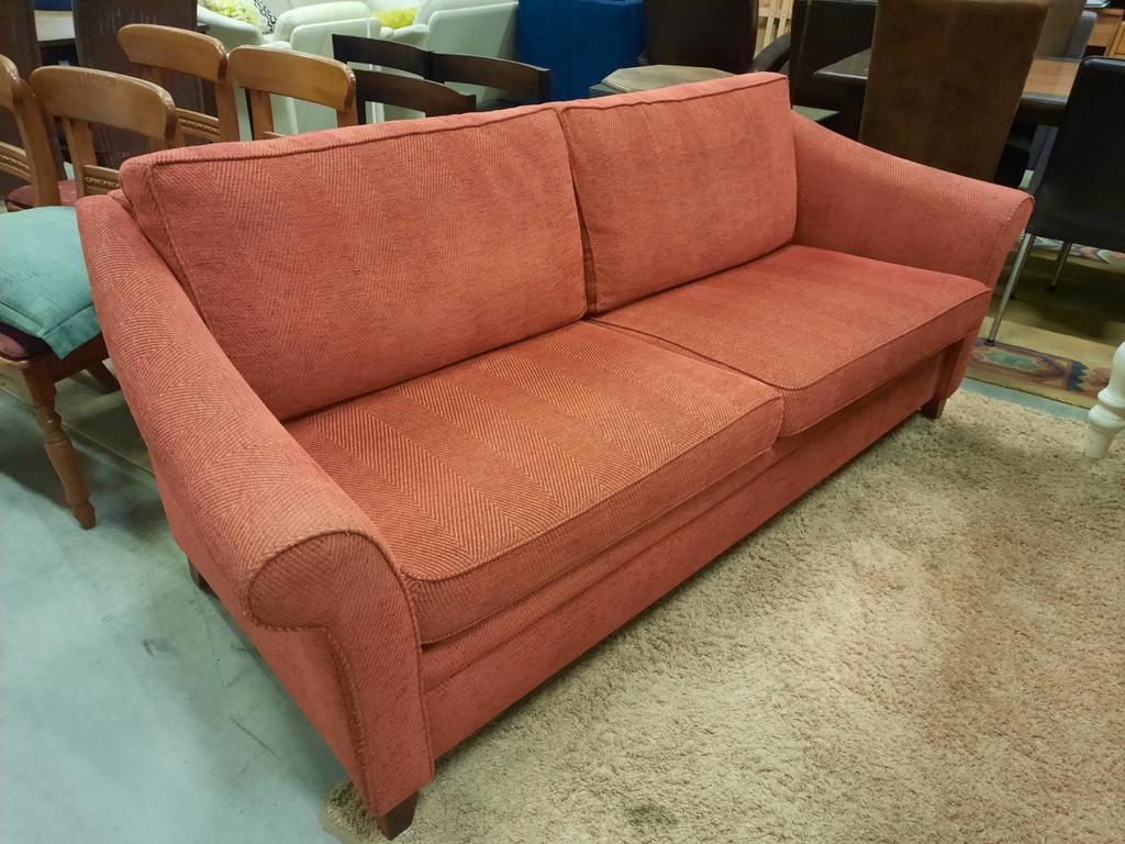2,5 zits bank met losse omkeerbare kussens. Kussens met stoffen bekleding en ritssluiting. 2 Bijpassende stoelen. Op afspraak te b