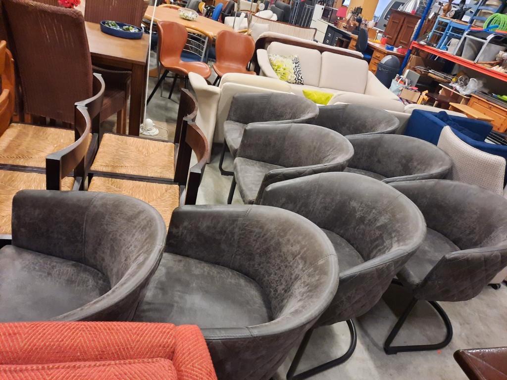 8 eetkamerstoelen antracietgrijze bekleding en zwarte poot