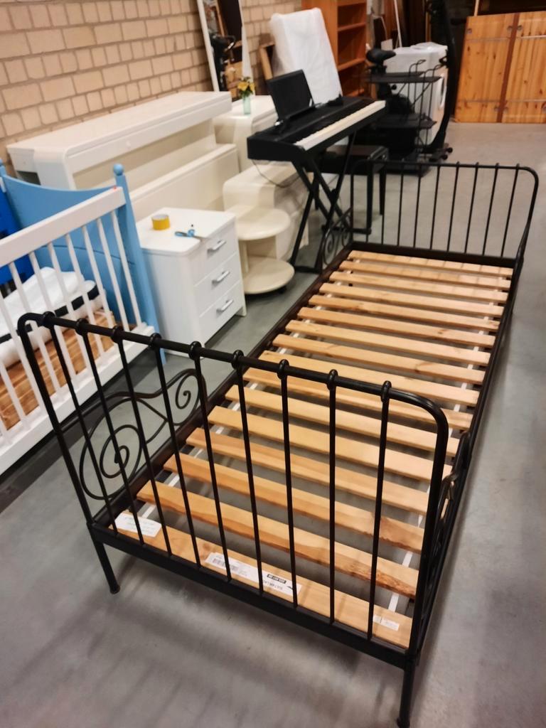 Ikea minnen metalen meegroeibed zwart lattenbodem variabel in lengte max 80×200 cm