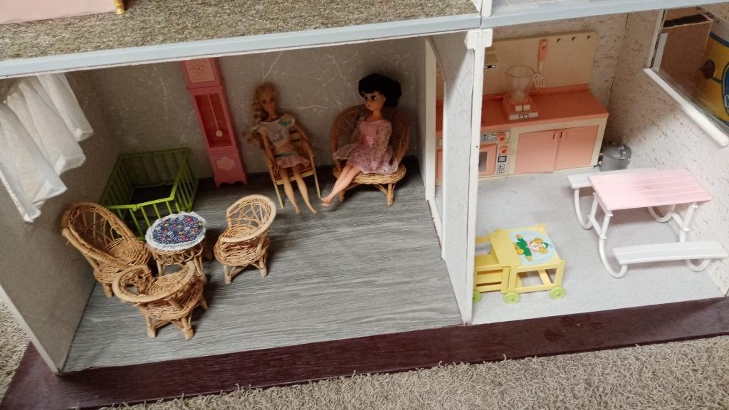 Groot barbie poppenhuis met diverse accessoires. Het poppenhuis is wel gebruikt, maar nog prima om mee te spelen. Incl. Meubeltjes