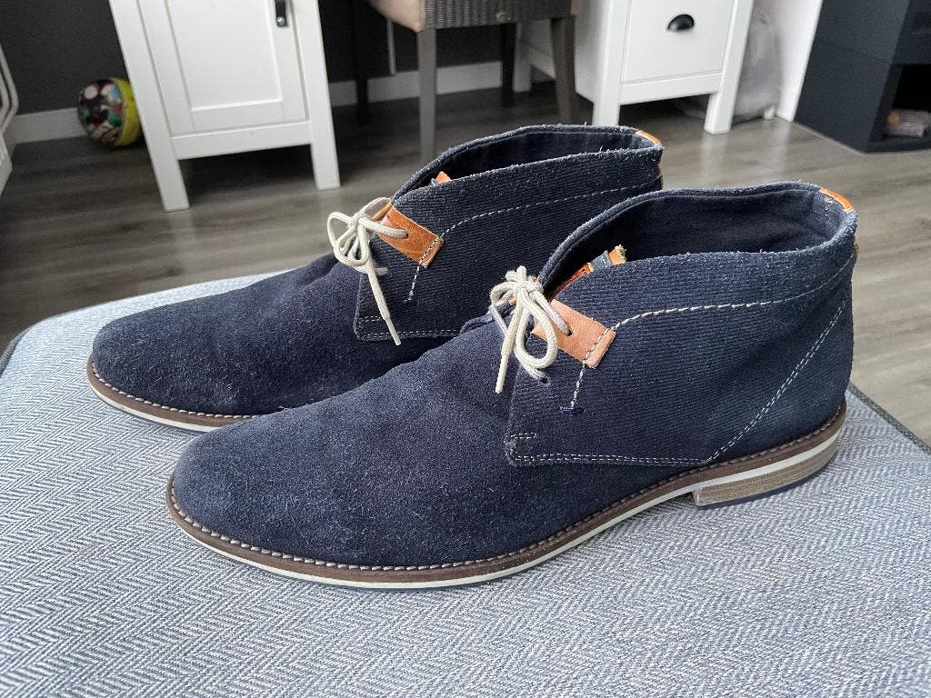 Mooie donkerblauwe veterschoenen. Het is maat 43. Heel mooi zacht leer / suede. Kijk ook eens bij de andere advertenties, daar staan nog meer schoenen, laarzen en andere mooie spullen de opbrengst is