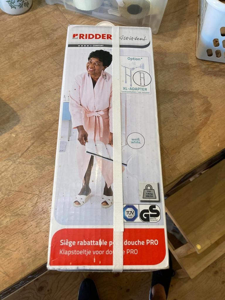 Fijne klapstoel voor in de douche. Nieuw in de doos. De artikelen die wij op marktplaats verkopen kunnen verstuurd worden of opgeh