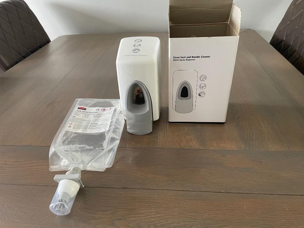 Nieuwe dispenser voor toiletbril-reiniger. Inclusief een nieuwe zak toiletbril-vloeistof. Kijk ook eens bij de andere advertenties