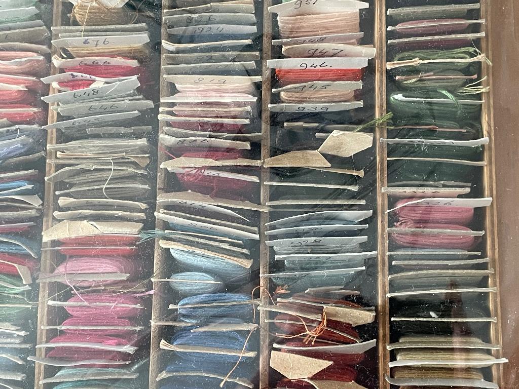 Een bak met allemaal dmc borduurgaren. Geschatte hoeveelheid 250 stuks. De hoeveelheid garen wat op een kaartje zit kan wisselen. Met de dmc nummers erop geschreven. Kijk ook eens bij de andere advert