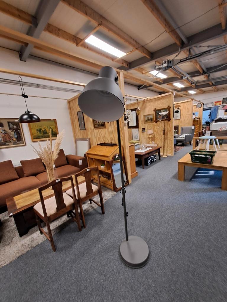 Mooie antracietkleurige staande lamp. Geeft een sfeervol licht en past in diverse interieurstijlen. De lamp is in goede staat en k