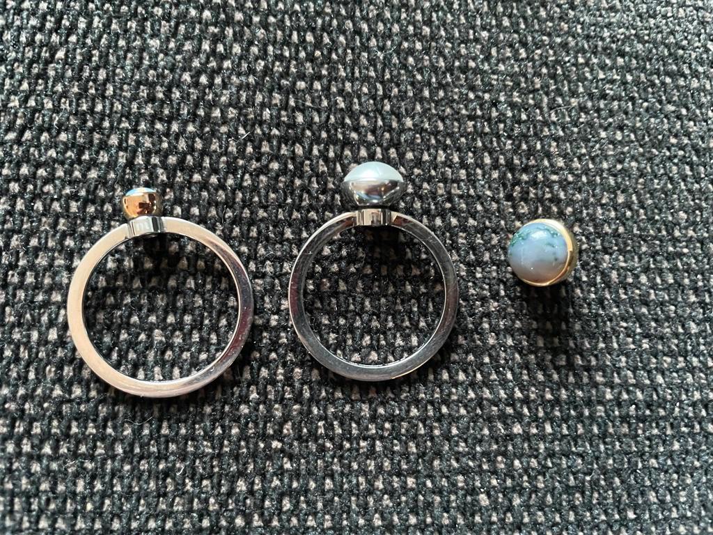 Twee prachtige melano ringen: h18 melano twisted 60, k18 melano twisted 60, met extra steen die je erop kunt draaien. De ringen zijn in uitstekende staat en voegen een stijlvolle touch toe aan elke ou