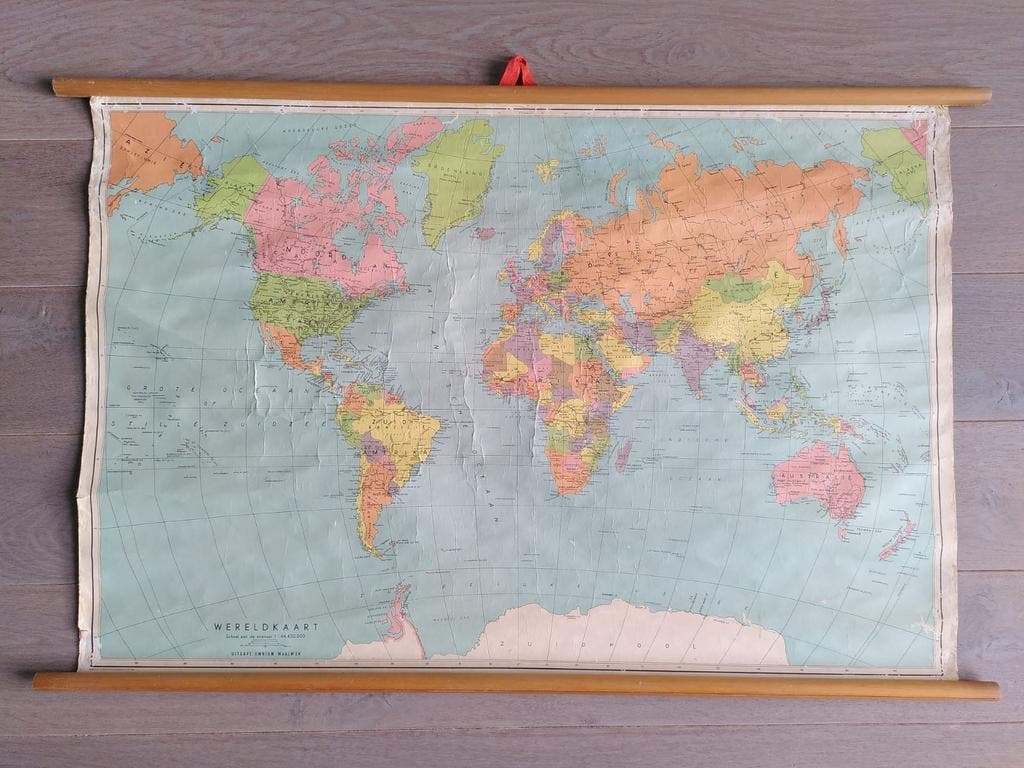 Vintage schoolplaat wereldkaart. WD-18.