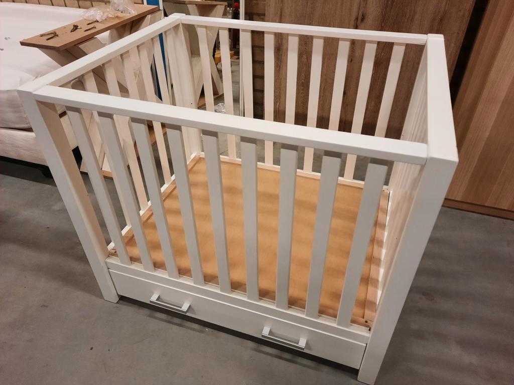Witte box met onderlade. Boxbodem op 2 hoogtes te plaatsen er is een witte afdekplaat boven de onderlade te plaatsen als de boxbodem in de hoogste stand staat.