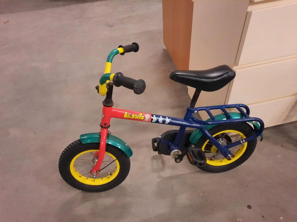 Loekie kinderfietsje zonder zijwieltjes en geen standaard. 12 Inch banden alleen terugtraprem. In gebruikte staat