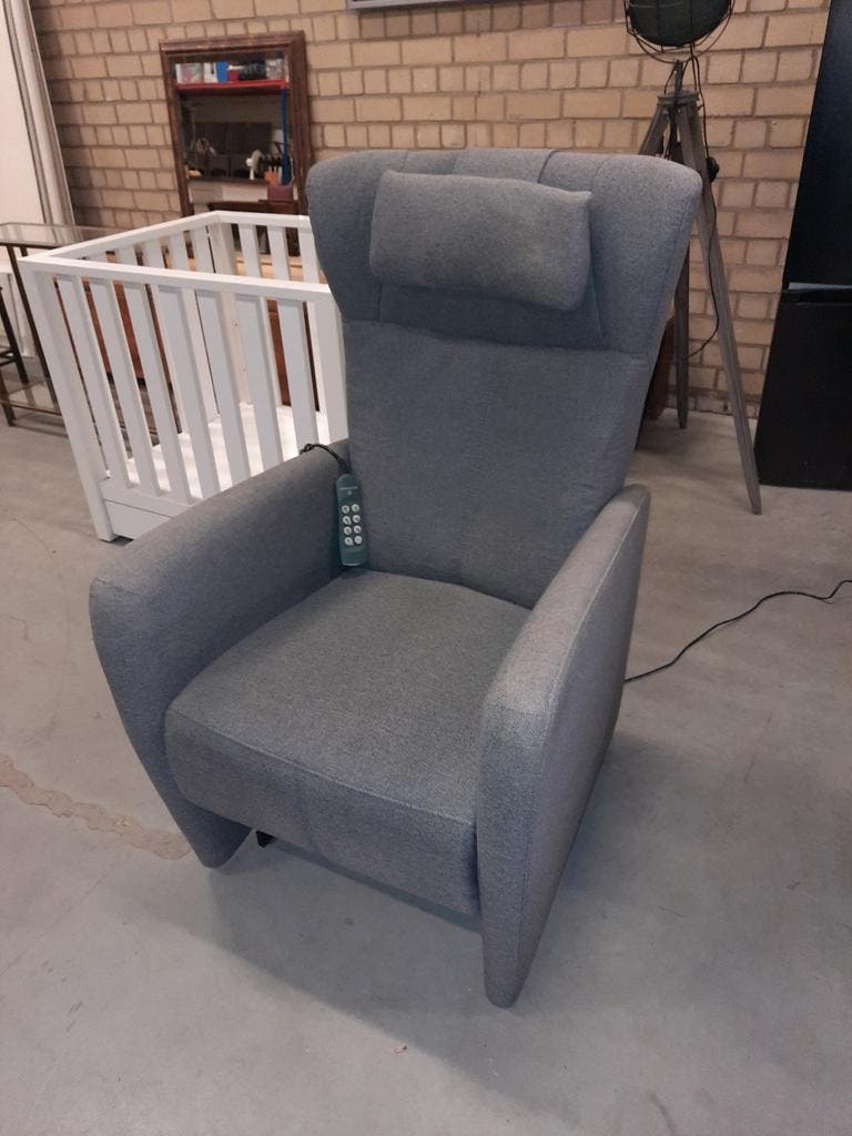 Prominent sta-opstoel met grijze stoffen bekleding