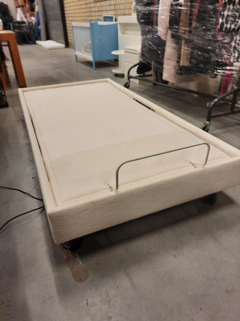 Elektrisch verstelbare lattenbodem 80×190 cm. Hoogte 10 cm incl. Latten. Zijpanelen zijn 7 cm hoog.