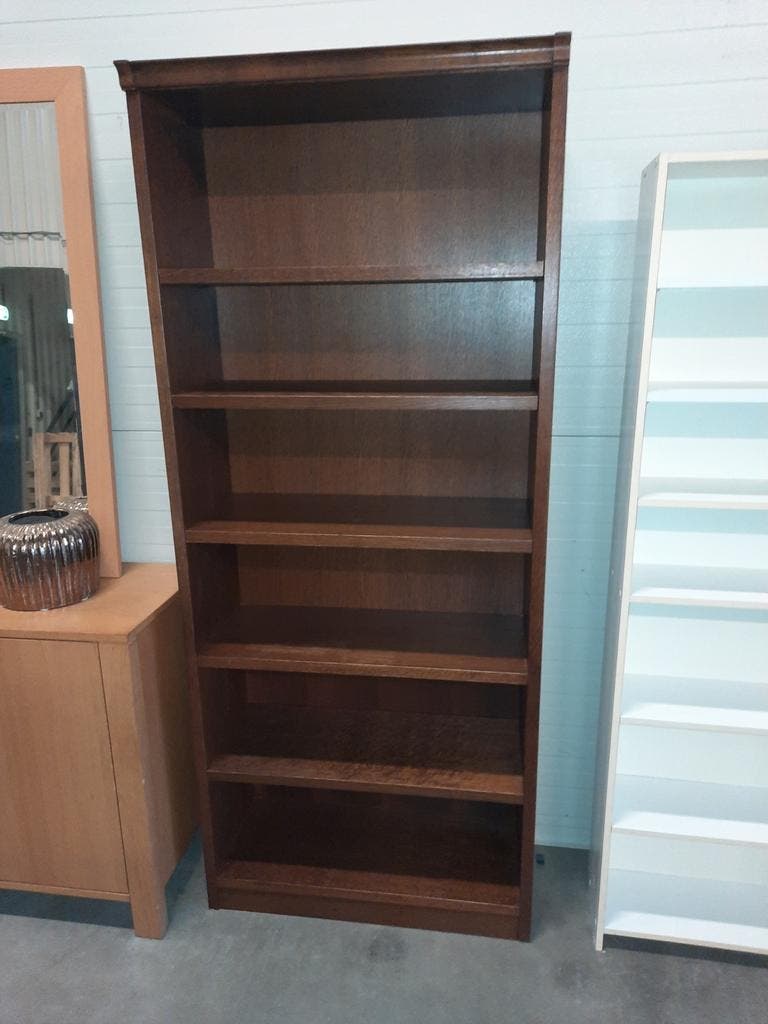 Donkereiken fineer boekenkast met 5 schappen