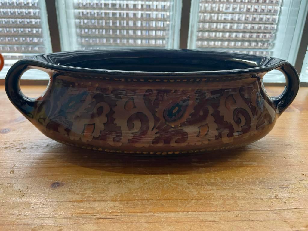 Vintage Gouda aardewerk schaal met handvatten (wd-30)