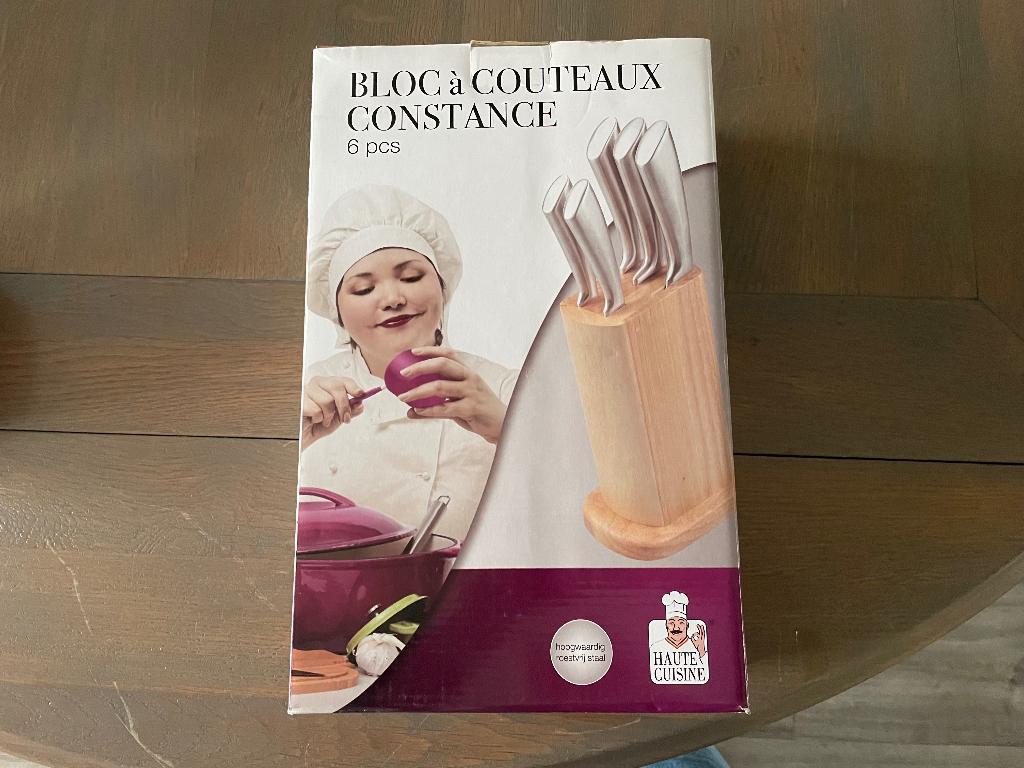 Gloednieuw messenblok met 5 messen. De messen zijn van.roestvrijstaal. Nog helemaal nieuw in de verpakking. Haute cuisine kijk ook eens bij de andere advertenties, daar staan nog meer mooie spullen de