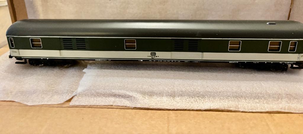 Leuke pico treinset. Het bestaat uit: 3 rijtuigen: 2 piko en 1 rivarossi 26 x rechte rails 39 x bochten 15 x korte bocht 11 x kort recht 2 x handwissel rechts 1 x aansluitrail 1 transformator bij een