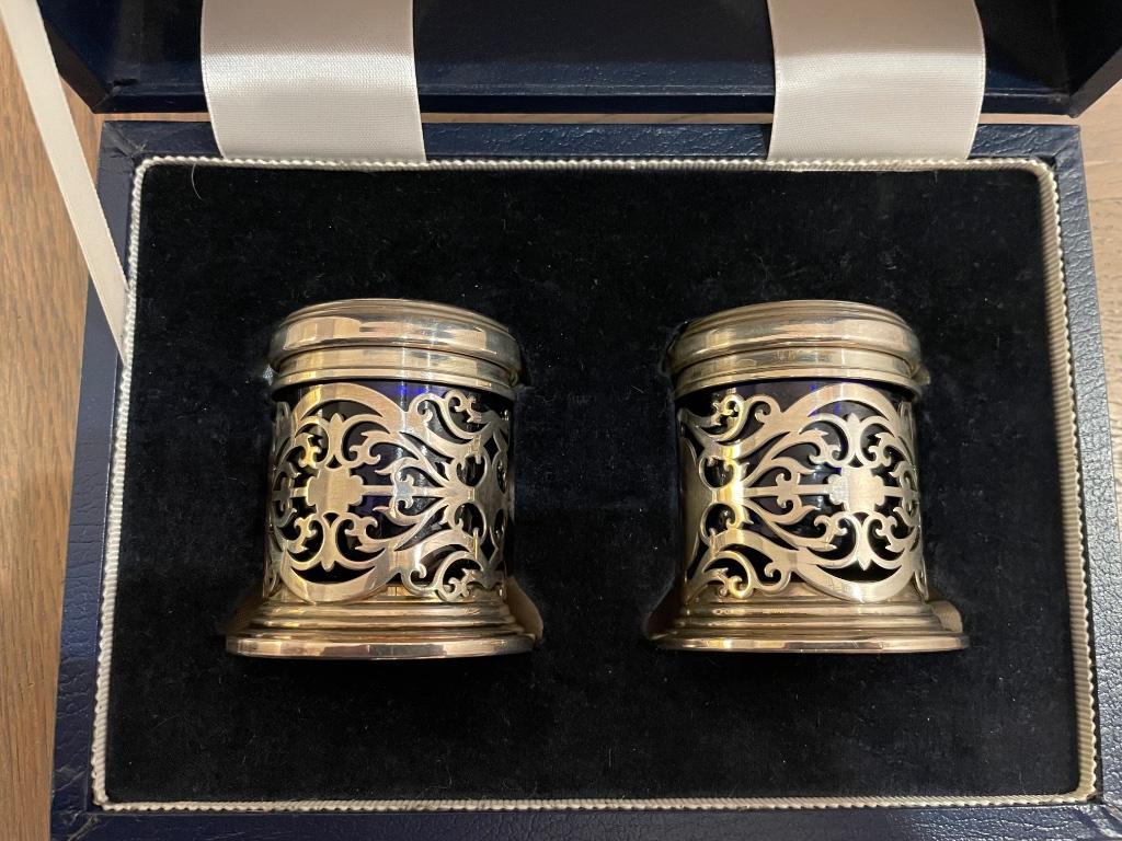 Prachtig engels peper en zout stel. Het is 925 sterling zilver. Met diverse keurmerken. Aan de binnenkant een glazen bakje van kob