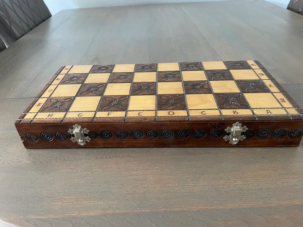 Prachtig houten schaakspel. Handgemaakt. De afmetingen zijn 39 x 38 cm. Kijk ook eens bij de andere advertenties, daar staan nog m