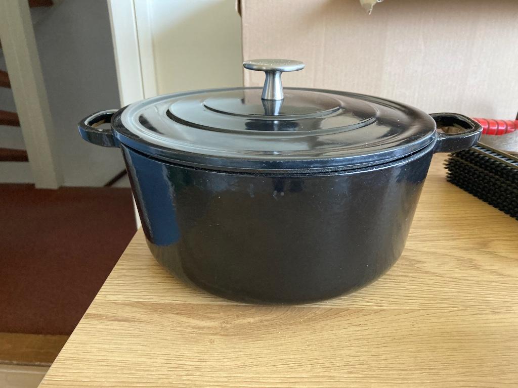 Hele nette gietijzeren pan van het merk royal van kempen & begeer. Doorsnee 25 cm. Hoogte 12 cm. Met roestvrijstalen knop. Kan