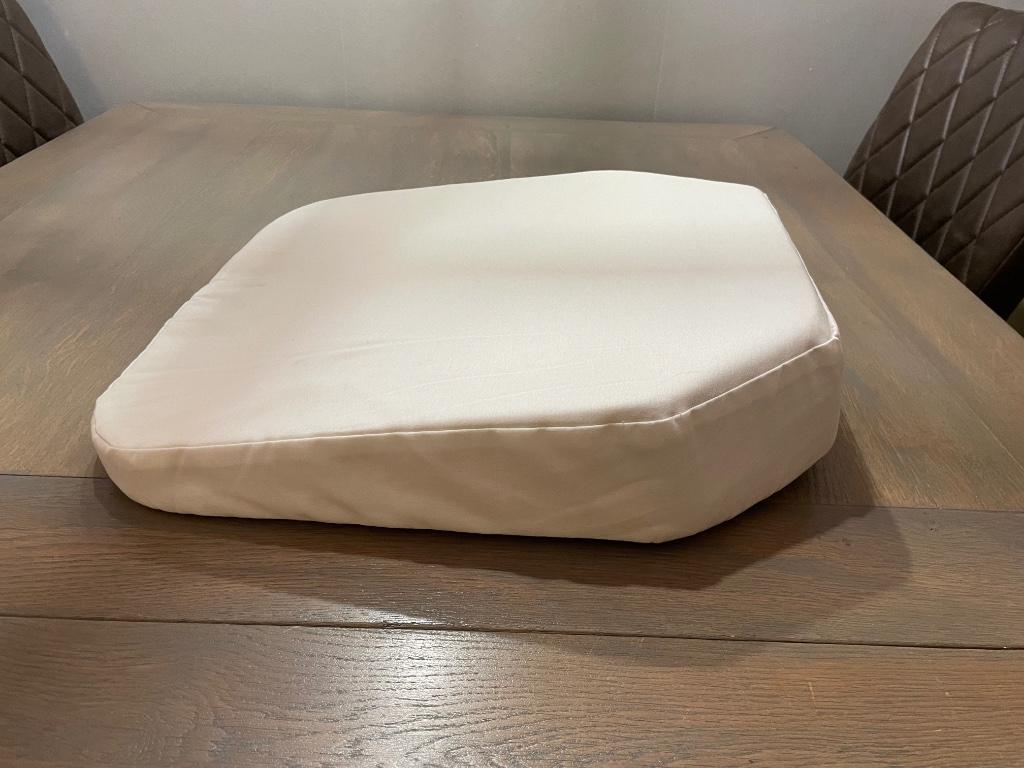 Comfortabel wigkussen, 10 cm hoog. Aan de lage kant 3,5 cm. Ideaal voor extra zitcomfort. Met katoenen hoes. Kijk ook eens bij de