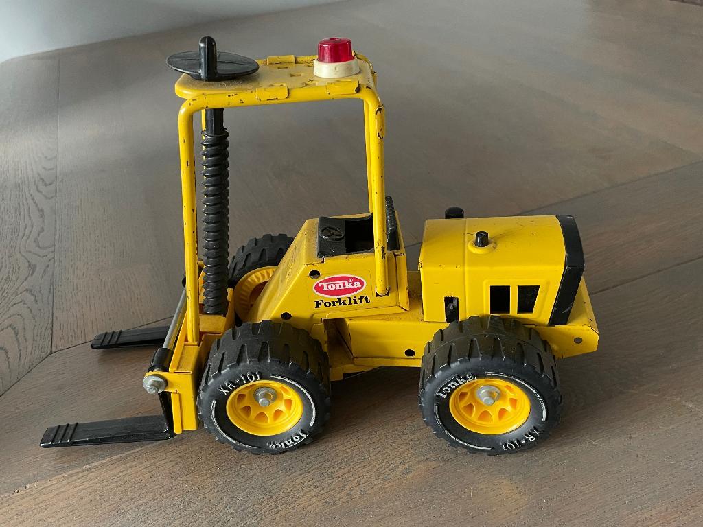 Tonka vorkheftruck. Wel wat gebruikssporen. Kijk ook eens bij de andere advertenties, daar staan nog meer mooie spullen de opbrengst is bestemd voor woord en daad