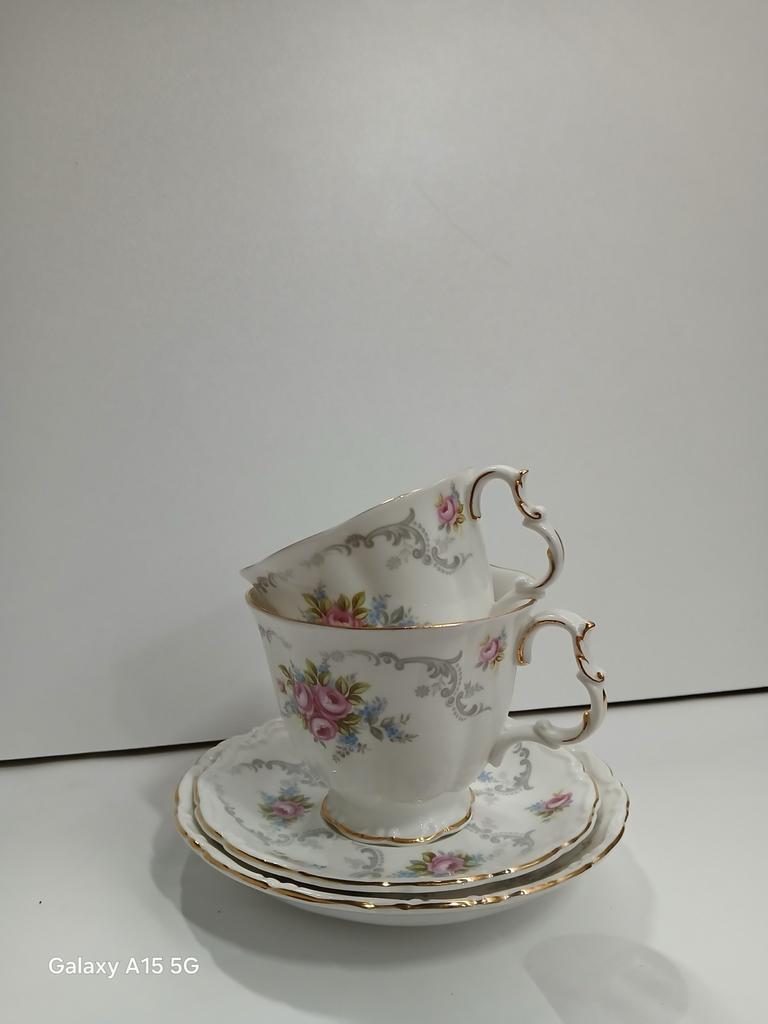 Prachtige set van royal albert, model tranquillity, bestaande uit kop en schotel. Perfect voor de verzamelaar of voor een elegante theesessie. In uitstekende staat.de set bestaat uit een koffie en the