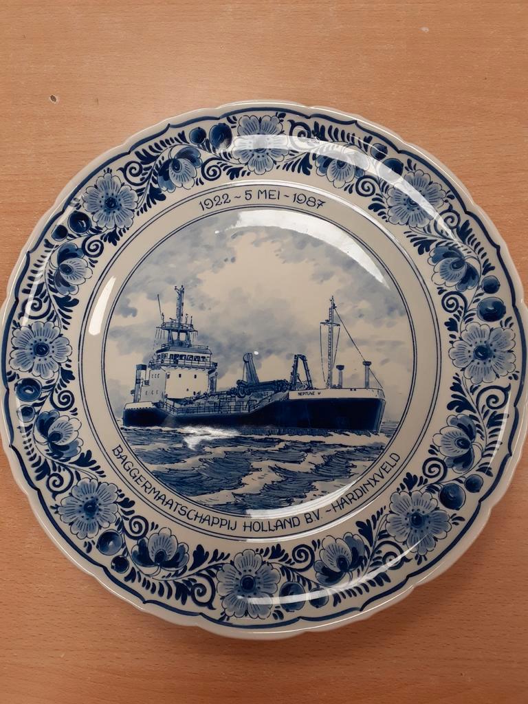 Wandbord sleephopperzuiger neptune, uitgegeven t.g.v. 55-Jarig bestaan van de firma holland. Plateelbakkerij schoonhoven in delfts