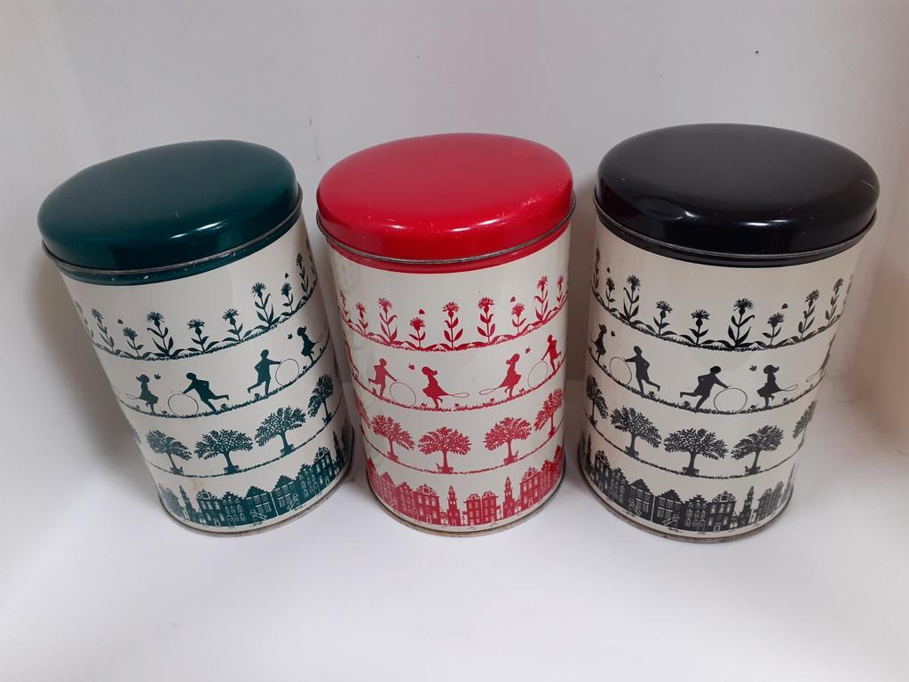 Tomado vintage blikken in 3 kleuren, 60’er jaren. Totaalprijs 17,50.
