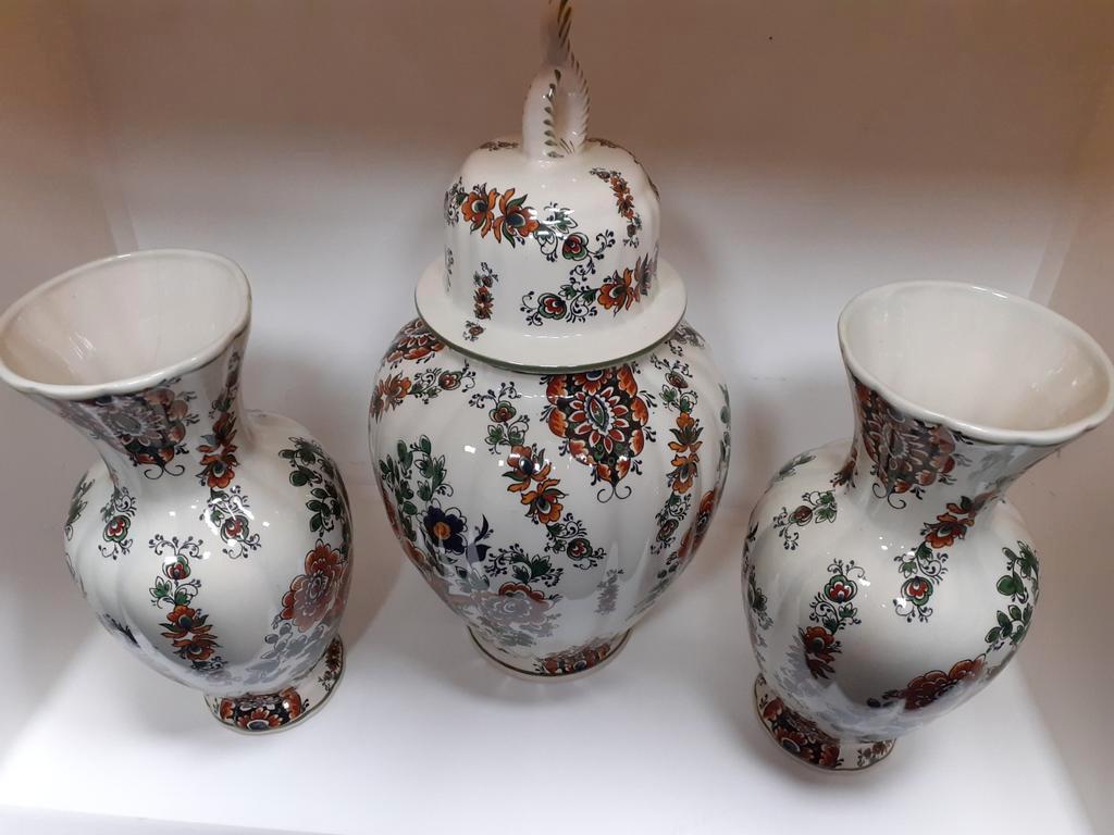 Kaststel delft’s handmade by bequet & cie, voor jema holland, maastricht. In 1 vaas zit een kleine scheur, zie foto 4.