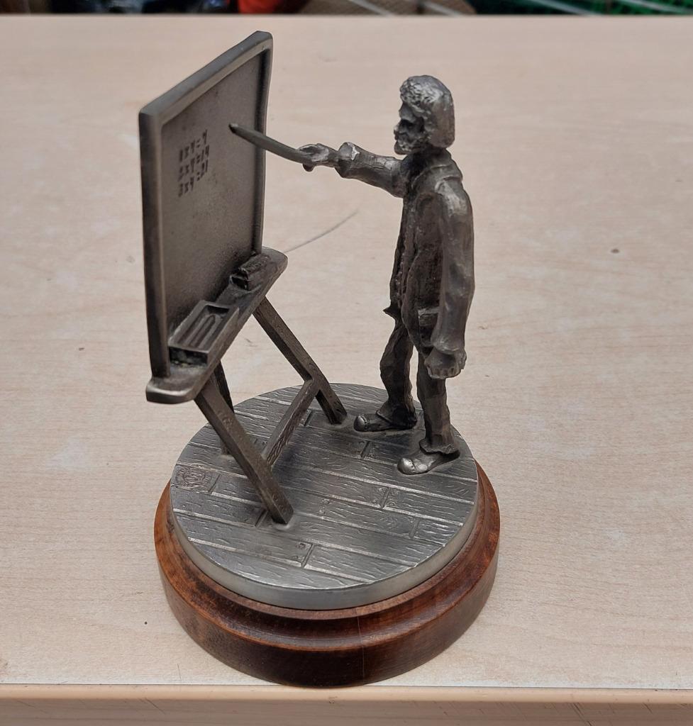 Mooi tinnen beeldje”de schoolmeester” hoog 15 cm rond 10 cm verzendkosten voor rekening koper afhalen mogelijk na afspra
