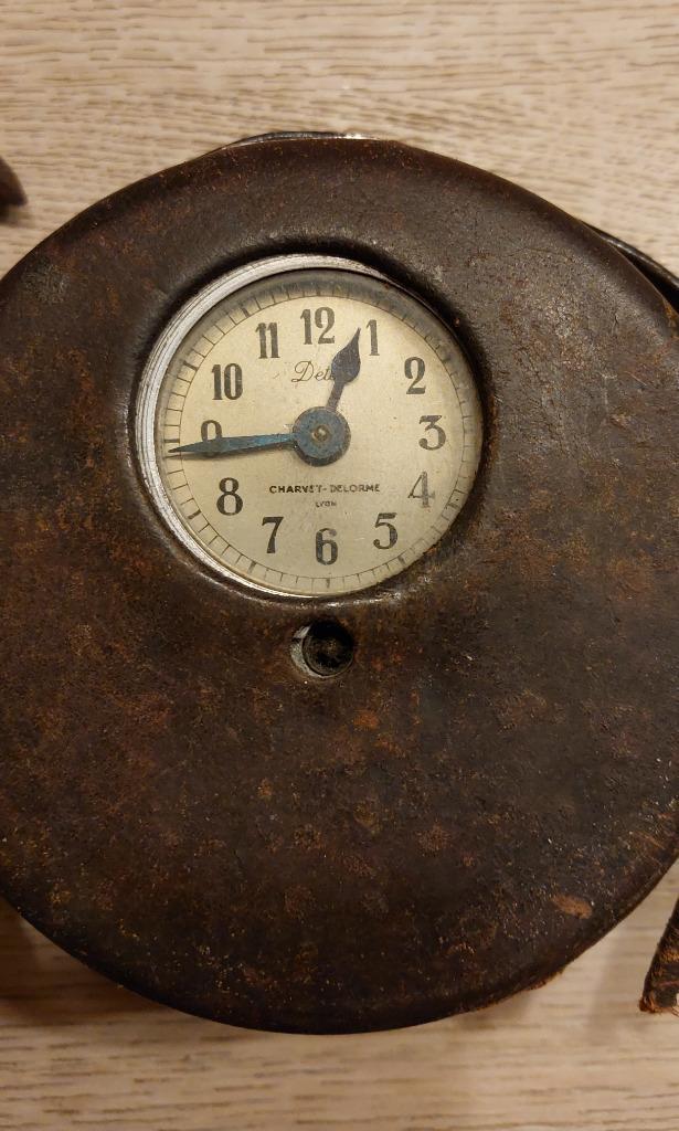 Mooi vintage militaire rekenschijf diameter 12 cm metalen behuizing in lederen etui verzendkosten voor rekening koper afhalen moge