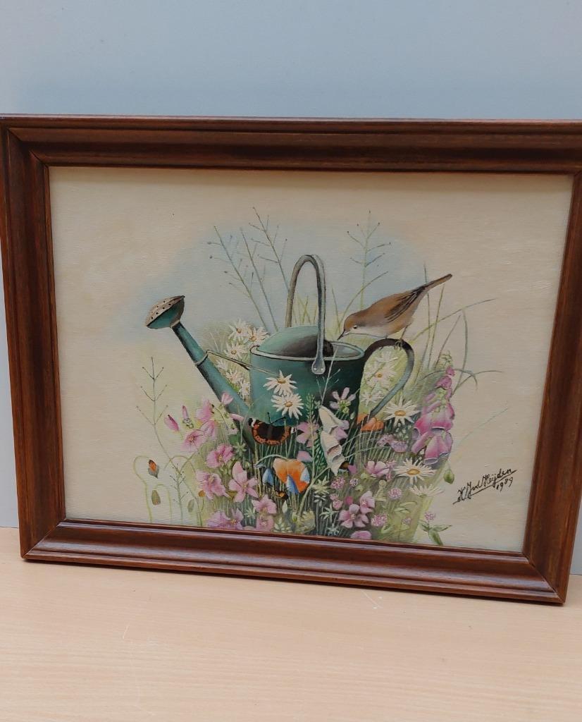 Schilderij van h.j.v.d.heijden 1989 geschilderd op doek stilleven met bloemen ingelijst afm lijst 46×36 cm afm doek 39×29 cm afhal