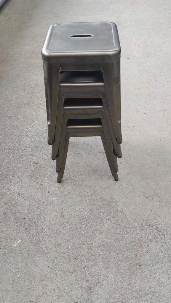 4 stuks tolux barkrukken industrieel, rvs, hoogte 45 cm afhalen na afspraak via mail prijs per stuk € 30,00 4 stuks voor &eur